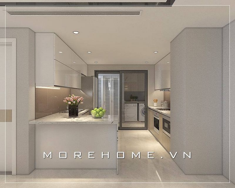 Thiết kế nội thất phòng bếp chung cư hiện đại, đơn giản và tiện nghi
