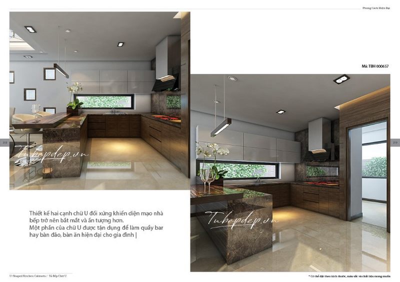 Trang trí nội thất phòng bếp chữ U phong cách đương đại đẹp, sang trọng tại biệt thự cao cấp Hải Phòng.