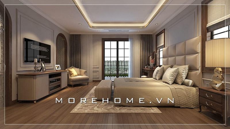 Mẫu thiết kế phòng ngủ chung cư cao cấp phong cách tân cổ điển