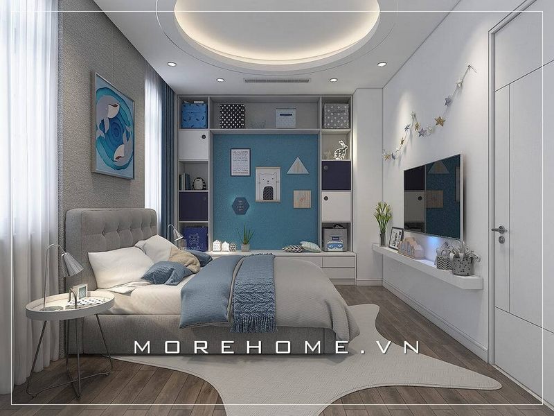 Thiết kế nội thất phòng ngủ con trai phong cách hiện đại, nhẹ nhàng mà vô cùng tiện nghi