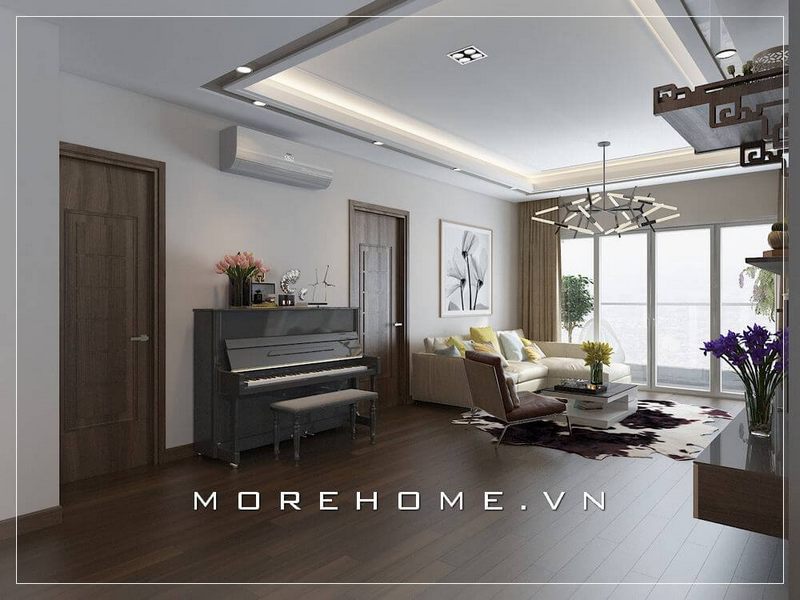 Bố trí phòng khách chung cư có đàn piano trang trí theo phong cách hiện đại, độc đáo.