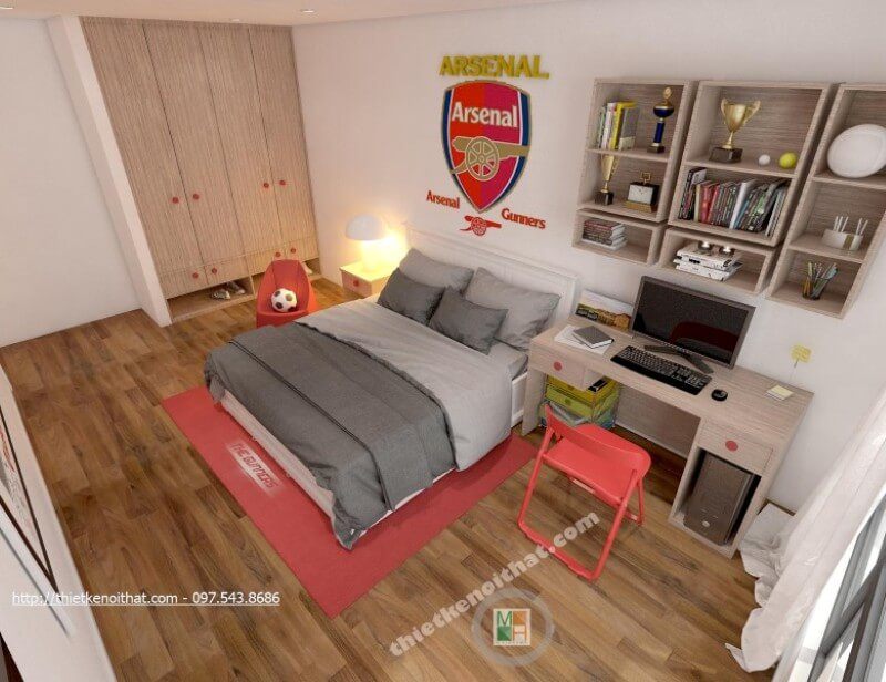 Mẫu bàn làm việc gỗ công nghiệp được thiết kế ngay trong khu vực phòng ngủ giúp cho gia chủ có một không gian làm việc và nghỉ nơi thoải mái nhất
