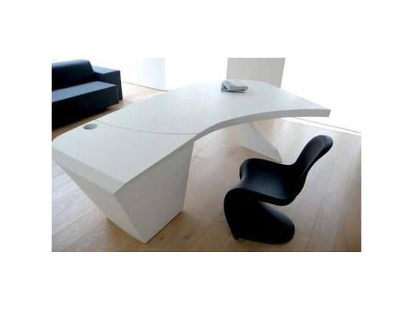 Bàn làm việc mặt đá màu trắng với ưu điểm đẹp, sang trọng, không thấm nước, dễ lau chùi đang là xu hướng thịnh hành trong năm nay.