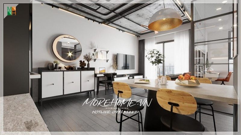 Thiết kế nội thất phòng ăn chung cư hiện đại, đơn giản nhưng không làm mất đi vẻ tinh tế và sang trọng cho không gian dùng bữa của gia chủ