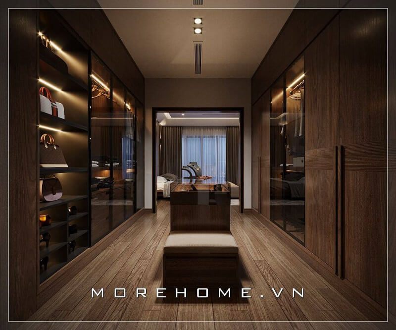 Tủ quần áo hiện đại kết hợp gỗ và kính sang trọng, trẻ trung lại tiện lợi để trưng bày túi xách phần nội thất đặc biệt trong thiết kế biệt thự, nhà phố