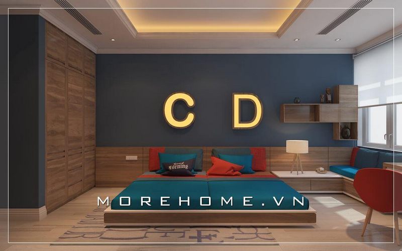 Thiết kế tủ quần áo gỗ hiện đại, trẻ trung tại phòng ngủ con trai