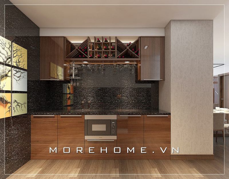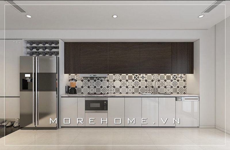 Tủ bếp được thiết kế mang phong cách hiện đại mang đến sự tinh tế và là động lực để các mẹ vào bếp nấu những bữa ăn ngon và nóng hổi cho cả gia đình.