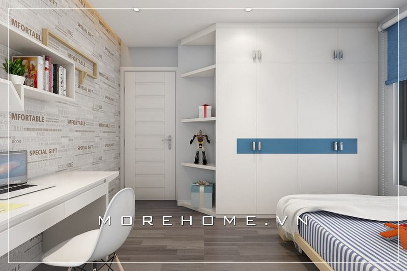Trang trí phòng ngủ bé trai ấn tượng và độc đáo với mẫu tủ quần áo hiện đại kết hợp kệ tủ trang trí tiện dụng