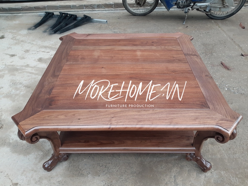 Bàn trà gỗ óc chó tân cổ điển tỉ mỉ từng chi tiết, đường cong mềm mại uyển chuyển thể hiện sự sang trọng, tính thẩm mỹ cao cho không gian