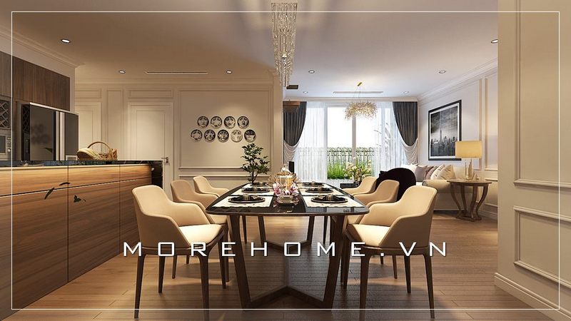 Thi công trọn gọi nội thất nhà chung cư phong cách tân cổ điển Vinhomes Nguyễn Chí Thanh quận Đống Đa, Hà Nội