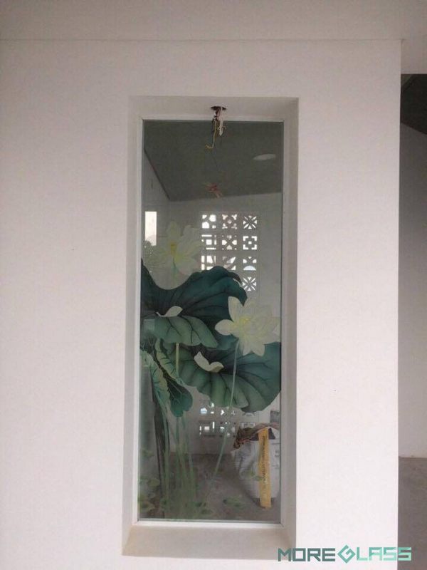 Mẫu vách kính nghệ thuật khắc 3D hoa sen trắng, tượng trưng cho sự thuần khiết, cao quý, giúp tô điểm cho ngôi nhà bạn thêm đẹp mắt, ấn tượng