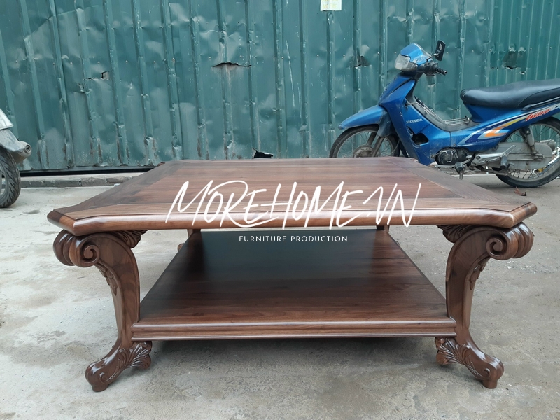 Bàn trà gỗ óc chó tân cổ điển tỉ mới tới từng chi tiết, nét chạm khắc tinh tế, sang trọng, cao cấp thẩm mỹ cao cho không gian
