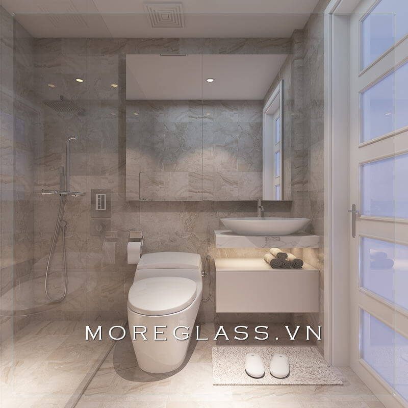 Mẫu gạch ốp lát bằng kính hiện đại cũng là lựa chọn hàng đầu cho việc trang trí nhà vệ sinh. Gạch kính với bề mặt láng bóng và khả năng phản xạ ánh sáng rất cao, khiến căn phòng quang đãng hơn. Bên cạnh đó, được ghép theo từng viên nhỏ sắt son tỉa điêu luyện thành họa tiết hoa văn thường được sản xuất công nghệ mới, gạch kính không chỉ trang trí mà còn tạo điểm nhấn thú vị cho không gian này. Vì thế, hãy áp dụng mẫu gạch ốp lát bằng kính để mang đến sự mới mẻ và hiện đại cho nội thất nhà vệ sinh của bạn!
