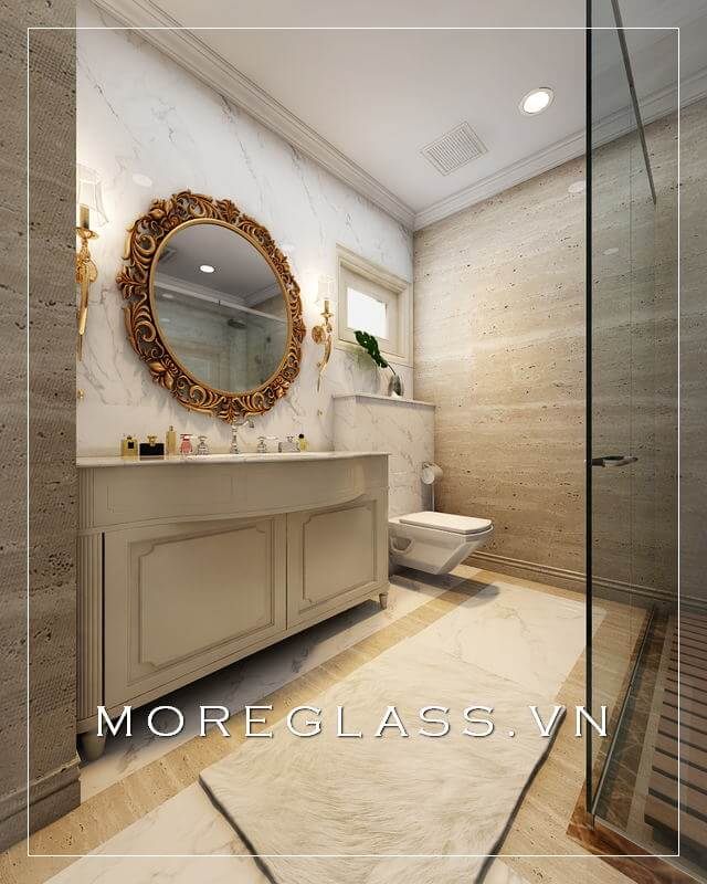 Nội thất tân cổ điển được sử dụng để trang trí phòng tắm, giúp đáp ứng nhu cầu và mang lại tiện nghi cho gia chủ.