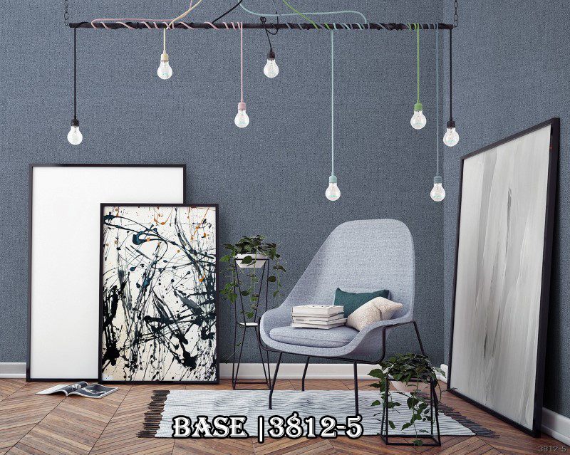 Trên nền xanh của mẫu giấy dán tường 3812-5, những bức tranh trừu tượng được tôn lên để tạo nên một không gian sáng tạo và nghệ thuật.